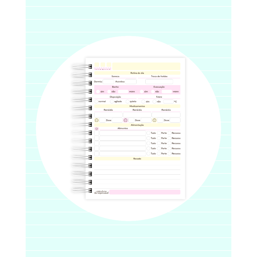 AGENDA PERMANENTE - SEM DATAS WIREO Branco Com opção de Elástico e bolso (Escolher nas variações) LAMINAÇÃO HOLOGRÁFICA Agenda Berçario/ Creche Ou escolar (Escolher nas variações) Capa Dura ( com nome da criança) 200 páginas (100 folhas) Tamanho A5 14,5 x 21,5 cm Folhas offset 75 gr COM FOLHAS NÃO DATADA ENTRAR EM CONTATO APÓS A COMPRA OU ENVIAR NO CAMPO OBSERVAÇÕES NO ATO DA COMPRA O NOME CASO NÃO SEJA ENVIADO, IRÁ SEM PERSONALIZAÇÃO.