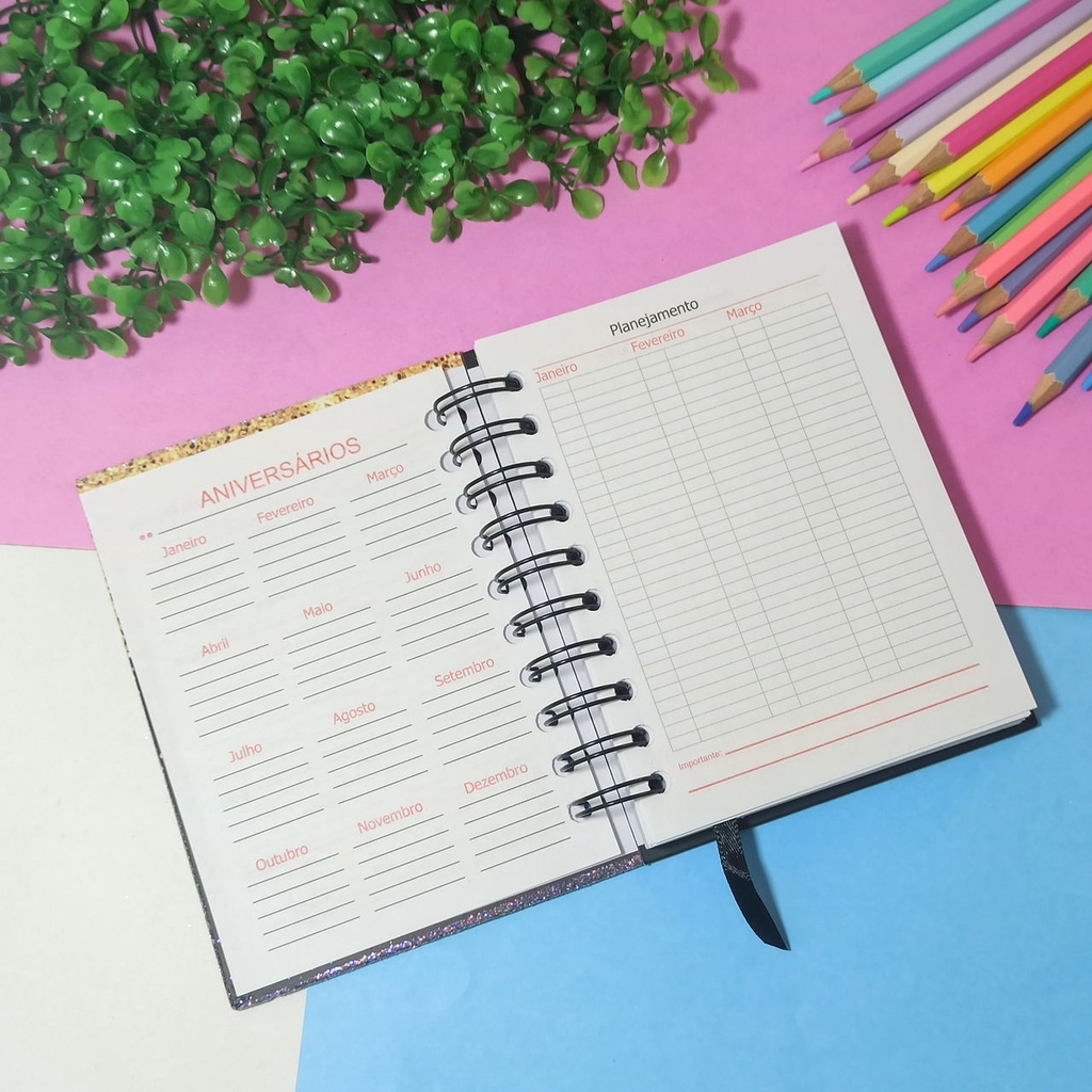 Agenda Permanente Colorida com Glitter 80/160 Folhas