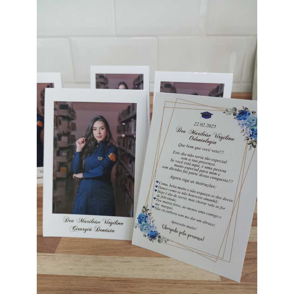 - LEIA ATENTAMENTE A DESCRIÇÃO - Plaquinha de agradecimento Formatura com foto - Anuncio com: 10, 15, 20, 25, 30... unidades - Personalizamos com a sua foto e a frase como desejar - Tamanho aprox: 14 de altura (cada lado) por 9,5 de largura - PRODUTO PERSONALIZADO, Após a compra informar: o nome, a formação, data, frase e enviar a foto Será um prazer atende-lo(a).