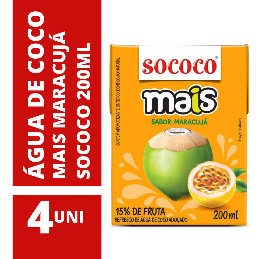 Água de Coco Mais Maracujá Sococo 200ml - 4 Unidades