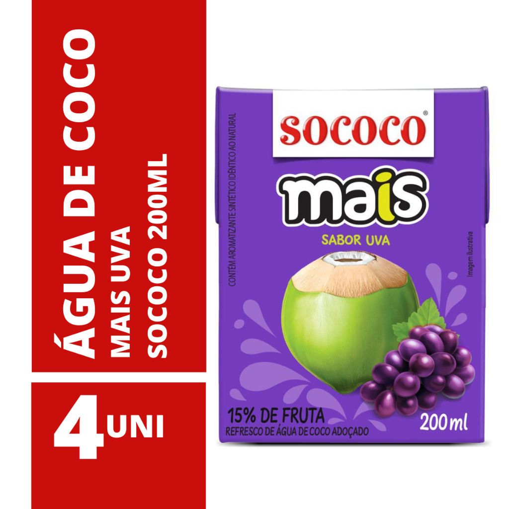 Água de Coco Mais Uva Sococo 200ml - 4 Unidades