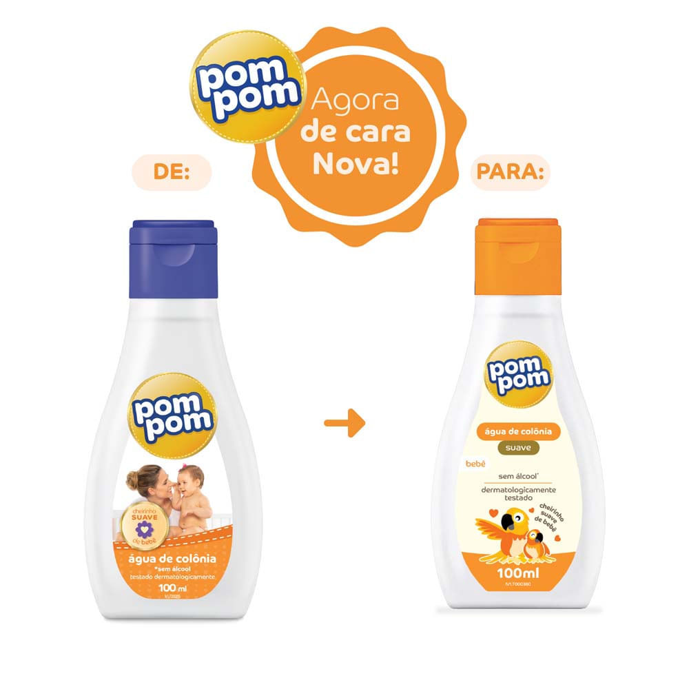 Água de Colônia Infantil Pom Pom Cheiro Suave de Bebê Zero Álcool 100ml