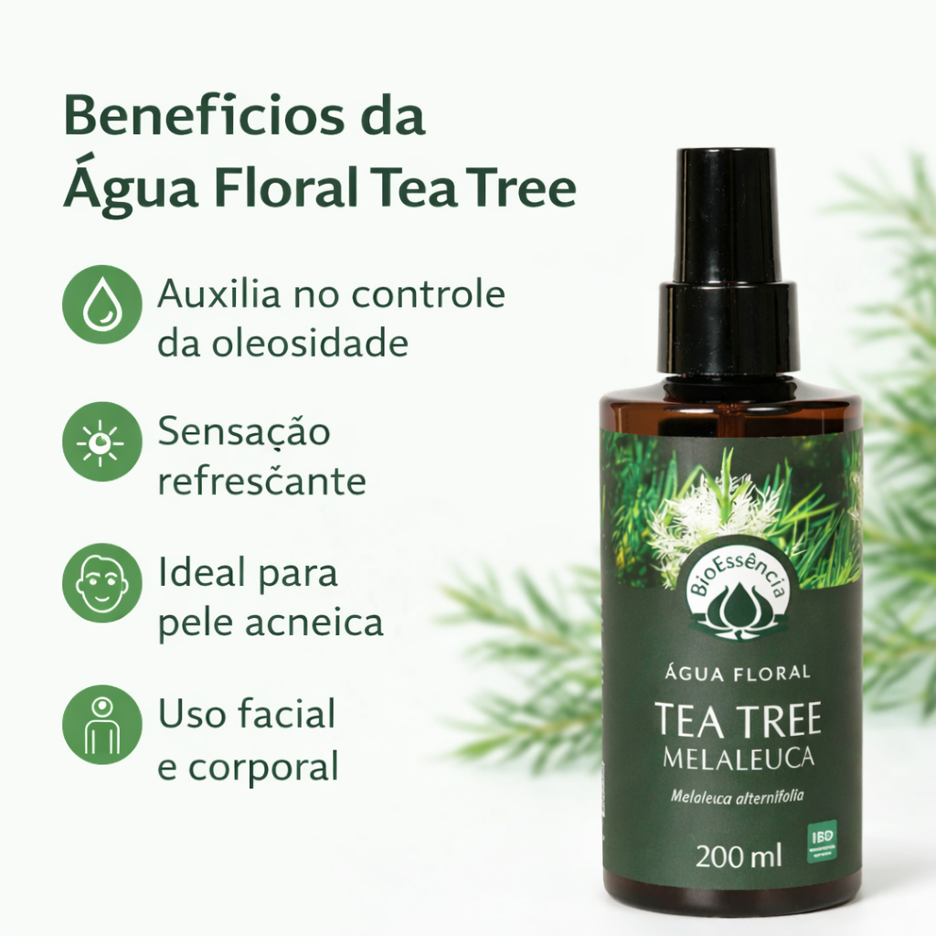 Seja bem-vindo(a) a Essenciais!! Água Floral de Tea Tree (Melaleuca alternifolia) pronta para o uso, rica em princípios ativos da planta aromática, é um poderoso fungicida e bactericida. Excelente para uso na podologia, evita maus odores e auxilia nos tratos da micose e pé-de-atleta. Antisséptico para o tratamento de feridas, cortes, queimaduras e picadas de insetos. Indicado para peles com acne e inflamadas. O que vem no pacote: - 01 Água Floral Tea Tree 200ml Sobre o Hidrolato (ou Água Floral): - Subproduto da destilação dos óleos essenciais - Contém os mesmos benefícios da planta, mas em uma versão suave e diluída - Pode ser aplicado diretamente na pele, cabelo e até nos pets - Perfeito para peles sensíveis e uso diário Modo de usar: Aspergir no rosto, corpo, couro cabeludo ou ambiente. Borrifar no rosto com os olhos fechados, inalando profundamente após a aplicação. O que é o Hidrolato: Um hidrolato, também conhecido como água floral, é um subproduto do processo de destilação a vapor de plantas e flores, o mesmo método utilizado para a extração de óleos essenciais. Durante esse processo, a planta é aquecida, liberando compostos aromáticos que se separam em duas partes: o óleo essencial, que é mais concentrado, e o hidrolato, que contém os compostos hidrossolúveis da planta, além de pequenas quantidades do óleo essencial. Por que escolher o Hidrolato? ✅ Mais seguro e suave (pode ser usado puro) ✅ Versátil (rosto, cabelo, corpo, pets, ambiente) ✅ Hidrata e trata sem oleosidade ✅ Custo-benefício melhor, já que rende mais no uso diário Ou seja, se a pessoa quer um efeito rápido e intenso, o óleo essencial é a escolha. Mas se ela quer algo prático, seguro e para todos os dias, o hidrolato é perfeito! Para que serve o hidrolato: 1. Cuidado com a pele: O hidrolato é frequentemente usado em tratamentos faciais, como tônico ou spray refrescante, devido às suas propriedades suavizantes, hidratantes e calmantes. Por ser menos concentrado que os óleos essenciais, é ideal para peles sensíveis. 2. Aromaterapia: Ele pode ser utilizado para promover o bem-estar emocional, com efeitos calmantes ou revitalizantes, dependendo da planta de origem. Por exemplo, hidrolato de lavanda é conhecido por suas propriedades relaxantes. 3. Cabelo: Aplicado como spray no cabelo, o hidrolato pode hidratar e revitalizar os fios, além de dar brilho e melhorar a saúde do couro cabeludo. 4. Uso doméstico: Pode ser usado como um ambientador natural ou para borrifar roupas e lençóis, conferindo um aroma suave e natural. Eles são uma alternativa suave e natural, com um aroma leve, e são mais fáceis de usar do que óleos essenciais puros, tornando-se versáteis tanto para cuidados pessoais quanto para a aromatização de ambientes. SEM ÁLCOOL. CERTIFICADO IBD INGREDIENTES NATURAIS E VEGANO. Estamos à disposição para mais dúvidas no chat. Boas compras!