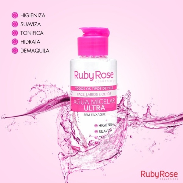 Descrição: Use a Água Micelar Ultra da Ruby Rose e tenha uma pele limpa, tonificada e hidratada. Um produto desenvolvido especialmente para àqueles (a) s que gostam de manter uma pele limpa e saudável, mesmo após o uso de maquiagem. Com uma fórmula livre de oleosidade e alto poder de limpeza e higienização, a Água Micelar Ultra elimina as impurezas e resquícios de maquiagem, deixando a pele perfeitamente hidratada, suavizada sem agredi-la. Ela é indicada para todos os tipos de pele, provocando uma limpeza de dentro para fora, ajudando a equilibrar o pH da sua pele. MODO DE USAR: 1 - Umedeça um algodão com a água, o suficiente para aplicar em todo o seu rosto. - A limpeza da pele pode ser feita no mínimo duas vezes ao dia, pela manhã e noite. Limpe a pele antes de aplicar a maquiagem e ao retirar a maquiagem com um demaquilante, aplique novamente para higienizar por completo a sua pele. USO EXTERNO. MANTENHA FORA DO ALCANCE DAS CRIANÇAS. Conteúdo da embalagem: 120ml. Composição: Aqua, Hexylene Glycol, Sodium Benzoate, Poloxamer 148, Peg-6 Caprylic/Capric Glycerides, Tetrasodium EDTA, Sodium Cocoamphoacetate, BHT, Etidronic Acid,Methylchloroisothiazolinone, Methylisothiazolinone #Imagem ilustrativa. Cor do produto poderá variar dependendo da configuração do monitor ou celular.