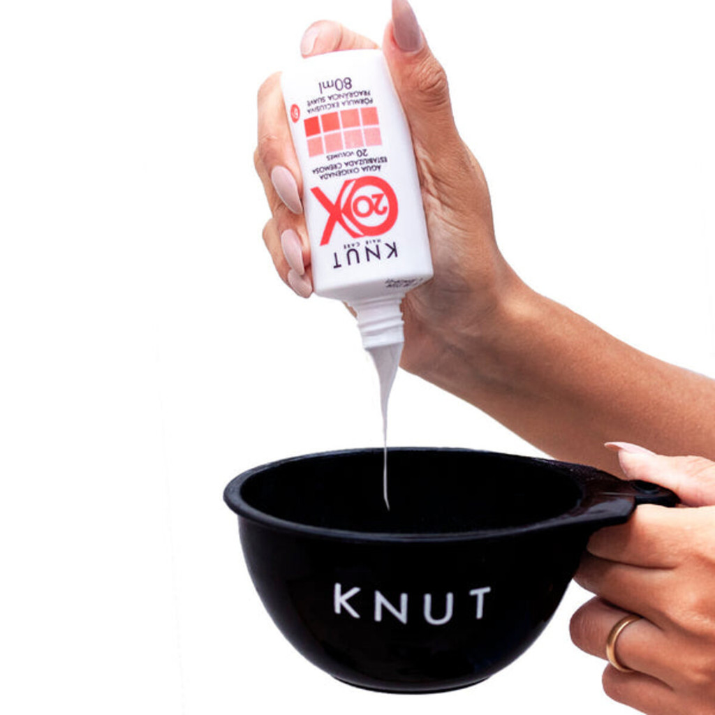 Descrição Fórmula exclusiva e Fragrância suave A Água Oxigenada Estabilizada Cremosa KNUT foi especialmente desenvolvida para o uso com os produtos da linha de coloração KNUT COLORS e nossa linha de matizadores KNUT SILVER, a preferida das loiras do Brasil. Desde os primeiros momentos do processo de descoloração, desfrute da qualidade que você já conhece e o resultado impecável que você ama. Especificações Ação: Promove a oxidação nos processos de coloração ou descoloração. Princípios Ativos: Peróxido de Hidrogênio ÓLEO DE ARGAN, ÓLEO DE MACADÂMIA E EXTRATO DE ALOE VERA, que protegem os fios durante o processo. Coloração: Misture na proporção indicada na parte interna do cartucho da coloração KNUT COLORS (1 para 1¹/²). Descoloração: Utilize a proporção conforme a indicação no verso do Pó Descolorante KNUT PREMIUM e Pó Descolorante KNUT COLÁGENO.