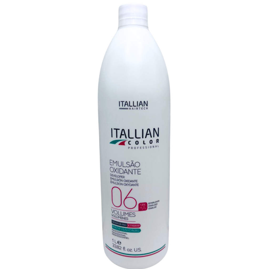 Itallian Oxi 06 possui exclusiva fórmula com Silk PPO®, DENSFOR® e k.tyon-r® que, além de clarear, proporciona brilho acentuado e emoliência aos fios. É uma emulsão oxidante estabilizada para colorir e descolorir o cabelo em conjunto com a Coloração Itallian Color, Sopremo, Coloratto ou Pó descolorante Itallian Color Golden Silk. Abre menos de 1 tom enquanto sua textura facilita a distribuição da mistura pelos fios sem escorrer e destaca a intensidade final da cor. Finalidade: Utilizado em conjunto com as Colorações Itallian Color, Sopremo ou Coloratto ou o Descolorante Itallian Golden Silk para colorir/descolorir os fios. Ativos: SILK PPO: Combinação de ingredientes que inclui a Proteína da Seda, extraída das fibras puras da seda sob condições extremamente controladas. Estas fibras naturais são constituídas por estruturas denominadas fibroínas, que são revestidas de sericina. As fibroínas são ricas em aminoácidos (glicina, alanina, tirosina e serina), que fazem parte da composição da fibra capilar. - Brilho acentuado - Umectação e emoliência aos fios DENSFOR e k.tyon-r : Combinação de ingredientes que inclui: Lanolina: Emoliente de natureza completamente “não pegajosa”. É indicado para cabelos danificados e quebradiços. Glicerina: Ingrediente altamente higroscópico, ou seja, possui grande capacidade de absorver água. Vitamina E: É absorvida diretamente no córtex capilar e também atua sobre a pele do couro cabeludo, favorecendo a microcirculação. - Condicionamento - Proteção dos fios durante o processo químico - Hidratação (absorção de água pela fibra capilar) - Efeito calmante e anti-inflamatório para a pele do couro cabeludo Outras Características do Produto: - Compatível com todas as linhas de Coloração da Itallian Hairtech: Itallian Color, Sopremo e Coloratto - Emulsão cremosa - Fragrância agradável - Fórmula estabilizada (o teor de Peróxido de Hidrogênio (H2O2) se mantém durante toda a vida útil do produto) Modo de Uso: Itallian Oxi pode ser utilizado na preparação das Colorações Itallian Color, Sopremo e Coloratto ou do Descolorante Itallian Golden Silk na quantidade indicada no modo de uso dos respectivos produtos. Precauções: CUIDADO. Contém substâncias passíveis de causar irritação na pele de determinadas pessoas. Antes de usar, faça a prova de toque. Pode causar reação alérgica. Para a prova de toque, preparar uma pequena quantidade do produto aplicando no antebraço ou atrás da orelha, deixar uma pausa de 20 minutos e lavar a área em seguida. Se após 24 horas não surgirem reações visíveis, usar o produto normalmente. Contém Peróxido de Hidrogênio. Evitar contato com os olhos. Em caso de contato com os olhos, enxaguar com água abundantemente e, se necessário, procurar um médico. Não usar nos cílios e sobrancelhas, pois poderá causar irritação e cegueira. Em caso de irritação, suspender o uso e procurar orientação médica. Não aplicar se o couro cabeludo estiver irritado ou lesionado. Usar luvas adequadas. A utilização deste produto não é indicada para gestantes e crianças. Guardar o produto sob abrigo da luz, em local seco e fresco, com a tampa bem fechada. Uso profissional. Itallian Oxi pode ser utilizado na preparação das Colorações Itallian Color, Sopremo e Coloratto ou do Descolorante Itallian Golden Silk na quantidade indicada no modo de uso dos respectivos produtos. Qualquer outra utilização não é recomendada. Uso externo. Manter fora do alcance de crianças. Prazo de Validade: 24 meses.