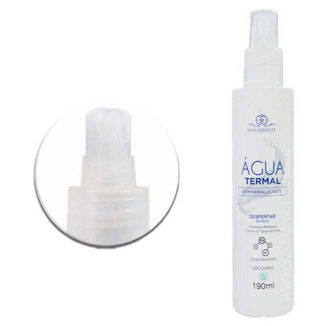 A Água Termal PhálleBeauty é rica em minerais, como Sódio Magnésio, Zinco e Mangânes que estimulam a renovação e estrutura das células a formação de colágeno. Sua formulação possui características específicas que aciona o despertar da pele, após aplicação e ativação dos seus benefícios: hidratação, umectação e revitalização, deixando a pele mais saudável e protegida de agressores externos. Especificações: Dimensões do produto (unitário): 20,5cm de altura; 4,2cm de diâmetro Peso Líquido (unitário): 190ml Conteúdo da embalagem: 12 un. Água Termal Phállebeauty