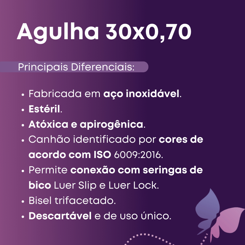 Agulha 30x0,70 22g Descartável Estéril Hipodérmica C/100un - Descarpack