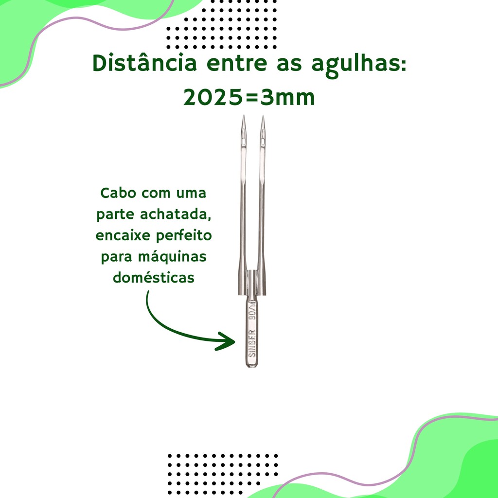Agulha Dupla Singer 4mm 3mm para Máquina Doméstica | Kit com 2 Unidades | Modelo 2024 2025