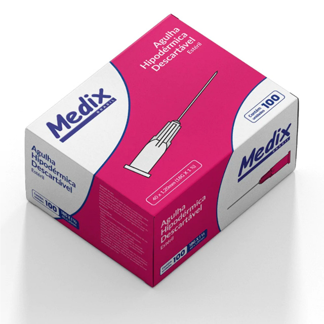 Agulha HiPodérmica 40x1,2mm 18g Estéril Rosa Cx 100un