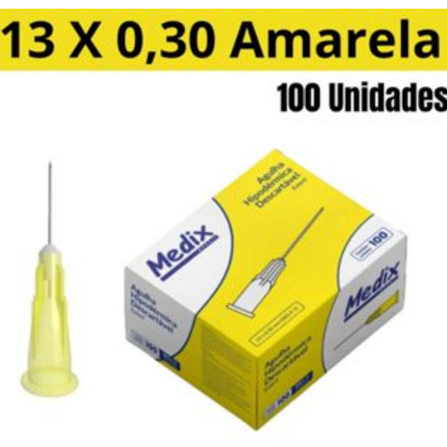 | Agulha Hipodérmica Amarela 13×0,30mm (30GX1/2) 100 un - Medix este produto | R$ 14,94 | — | 4.9/5 | 88 |