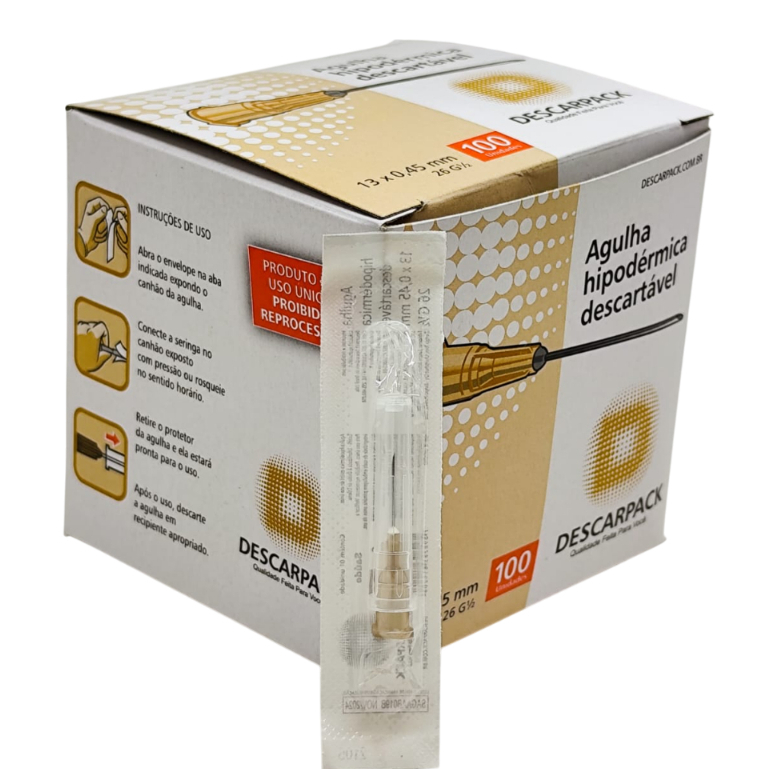 | Agulha Hipodérmica Descarpack 13x0,45mm - Kit 200 unidades este produto | R$ 37,91 | 5% | 4.9/5 | — |