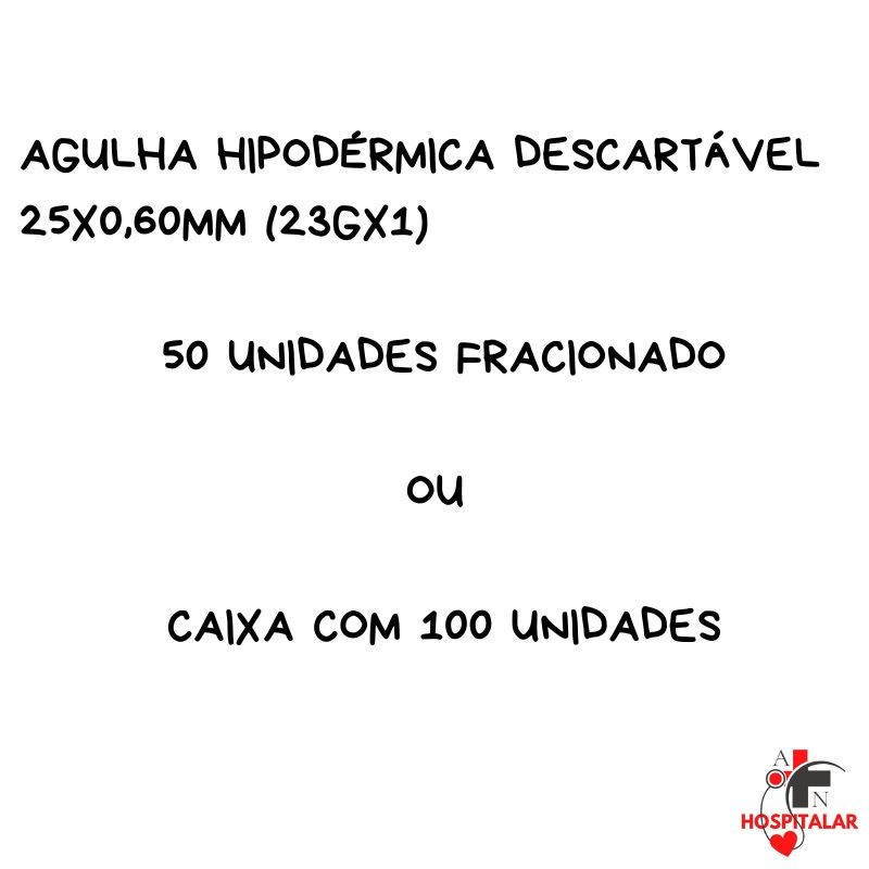 Agulha Hipodérmica Descartável 25x0,60MM (23Gx1) 50 e 100 Unidades