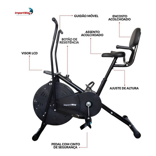 Air Bike Importway Ultra Conforto com Encosto Ergonômico e Regulagens Avançadas 150kg