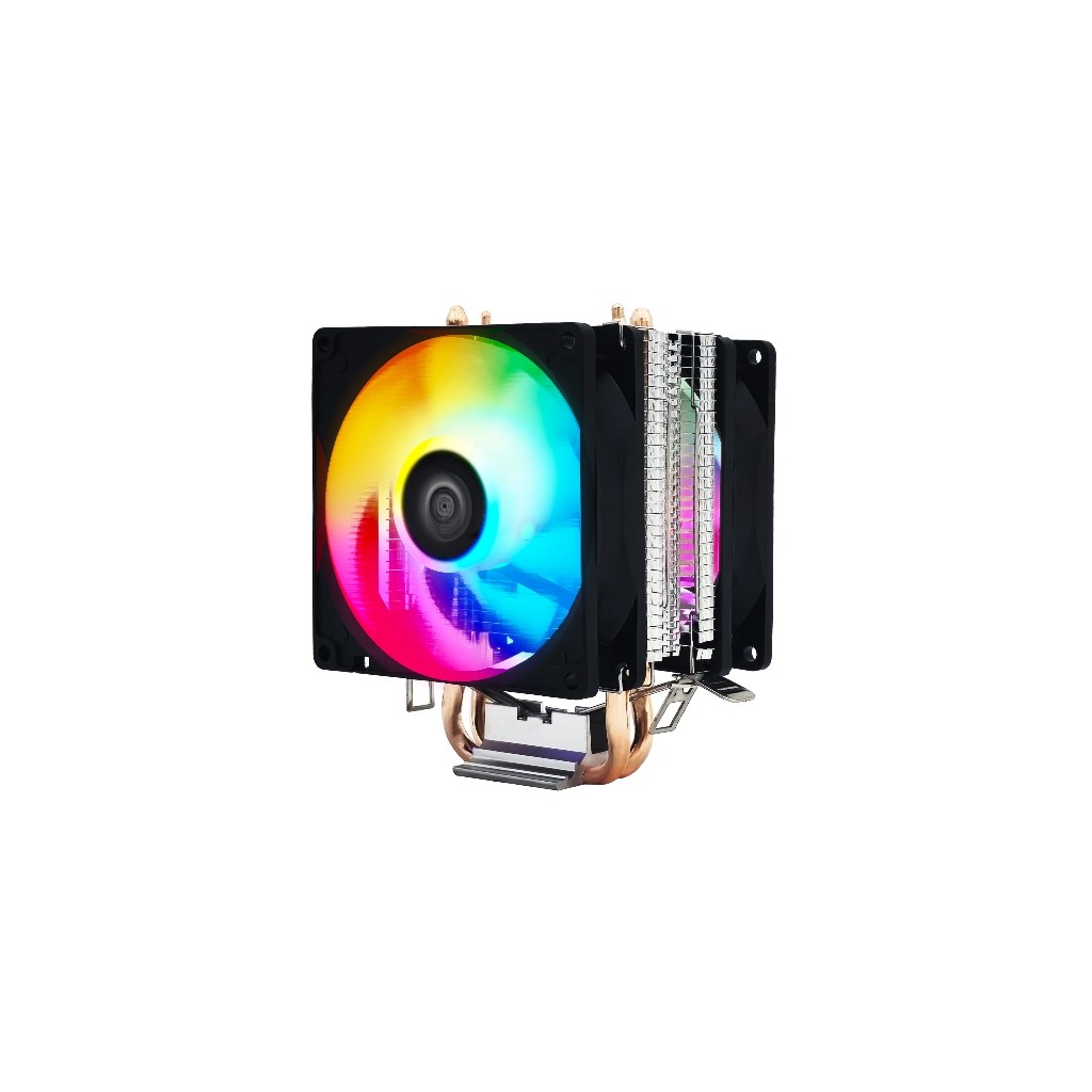 Escolha o cooler com o melhor custo-benefício para proteger o desempenho do seu processador durante as sessões de jogo. Este cooler é ideal para PCs gamers, pois dissipa o calor gerado e mantém o processador em temperaturas seguras, maximizando o desempenho e permitindo overclocking. Especificações Técnicas - Heatpipes: 2 tubos de 6mm para transferência térmica otimizada - Ventoinhas: 2 coolers de 92mm com hélices transparentes e efeito RGB (Rainbow) - Velocidade da Ventoinha: 2300 RPM ± 10% - Nível de Ruído: 25,8 dBA ± 10% - Tensão Nominal: DC 5-12V - Rolamento: Hidráulico - TDP Suportado: 110W - Conector: 3 Pinos - MTTF do Fan: 50.000 horas Compatibilidade de Sockets - Intel: LGA 775, 1150, 1151, 1155, 1156, 1200, 1366 - AMD: AM4, AM3+, AM3, FM2, FM2+, AM5 Conteúdo da Embalagem 1x Cooler para Processador 1x Suporte adaptador com travas 1x Sachê de pasta térmica