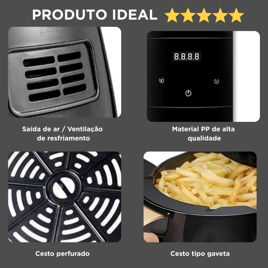Air Fryer 4,2 Litros 1500W 127v Digital Sem Óleo Timer Antiaderente Fácil Limpeza - BARUCH
