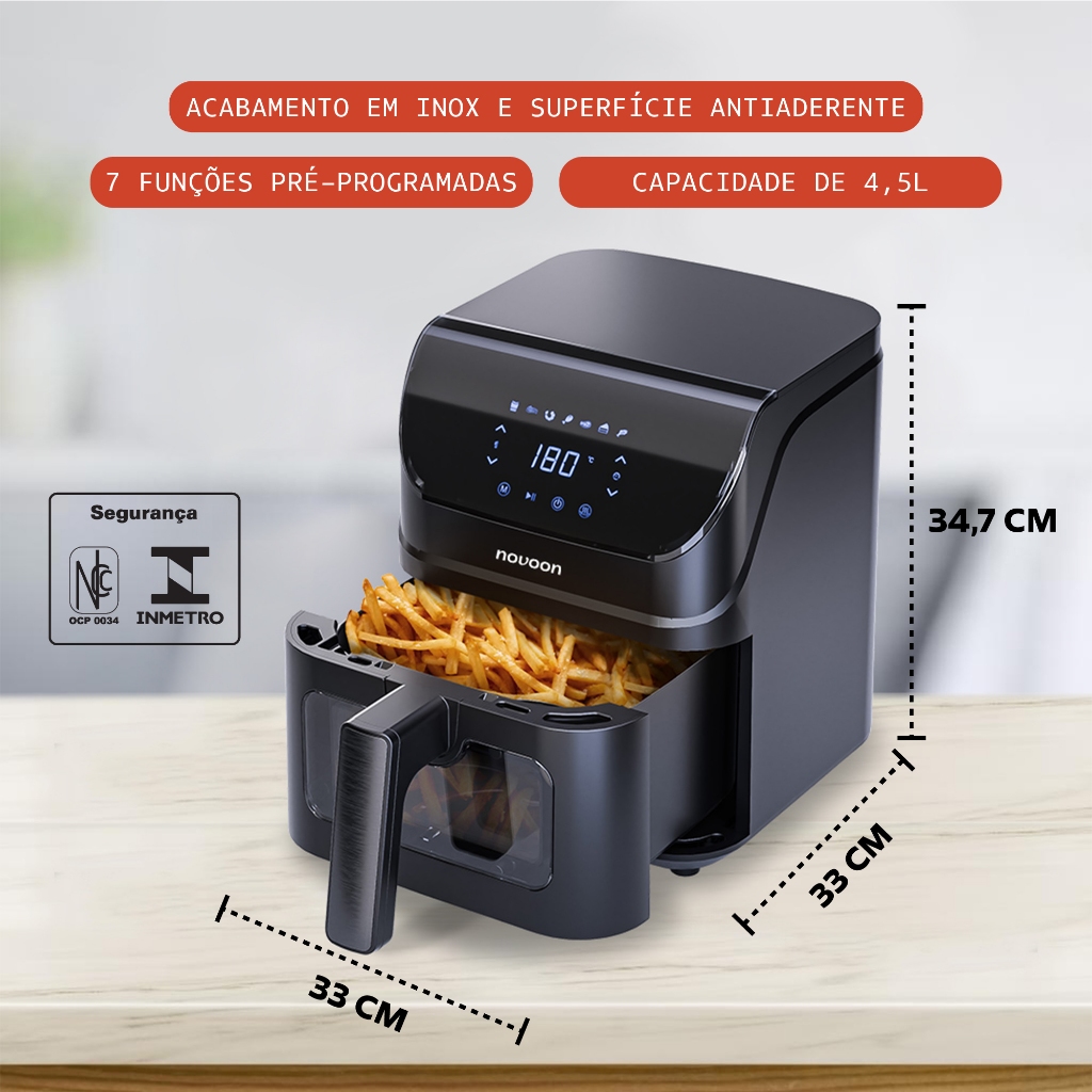 Air Fryer 4,5L Digital 1400W com Visor | Sem Óleo | Assa, Frita e Reaquece | Fácil de Limpar | 127/220V