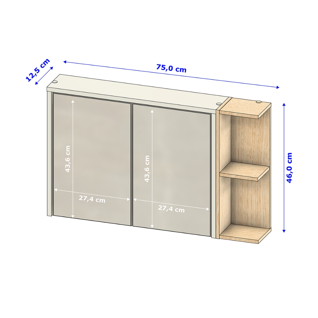 A Espelheira Veneza é tudo o que seu banheiro precisa! Extremamente funcional, ela possui duas porta com amplo espelho, que internamente possui nichos espaçosos e inteligentes, com isso proporciona 3 nichos onde você poderá guardar todos os produtos de higiene pessoa, perfumes, shampoos dentre muito outros artigos de beleza. Dois nichos laterais, que possui montagem flexível, tanto do lado direito quanto esquerdo do armário, que são ideias para acomodar decorações dentre muitos outros objetos. - Estrutura em MDP (Maior Resistência e Durabilidade); - Pintura e Verniz (Beleza e Qualidade). - 2 Portas com Dobradiças Metálicas - Fundo Flex Color - Montagem do Nicho Externo Flexível, possibilitando a montagem tanto do lado direito quanto esquerdo do armário. Medidas: Altura: 46,0 cm Largura: 75,0 cm Profundidade: 12,5 cm Medidas dos espelhos: 436 x 274 x 3 mm. RECOMENDAÇÃO: - Para maior durabilidade, recomenda-se que a limpeza seja feita com pano limpo e levemente umedecido em água e sabão neutro. Em seguida, deverá ser passado um pano limpo e seco. MONTAGEM: - Os móveis são entregues desmontados e todos acompanham manual com instruções de montagem. IMAGENS: - As imagens ambientadas são meramente ilustrativas e podem apresentar itens que não compõe o produto. - Objetos decorativos da imagem não acompanham o produto. - As cores do produto podem sofrer variação de acordo com o seu monitor a iluminação do seu ambiente ou sua percepção visual.