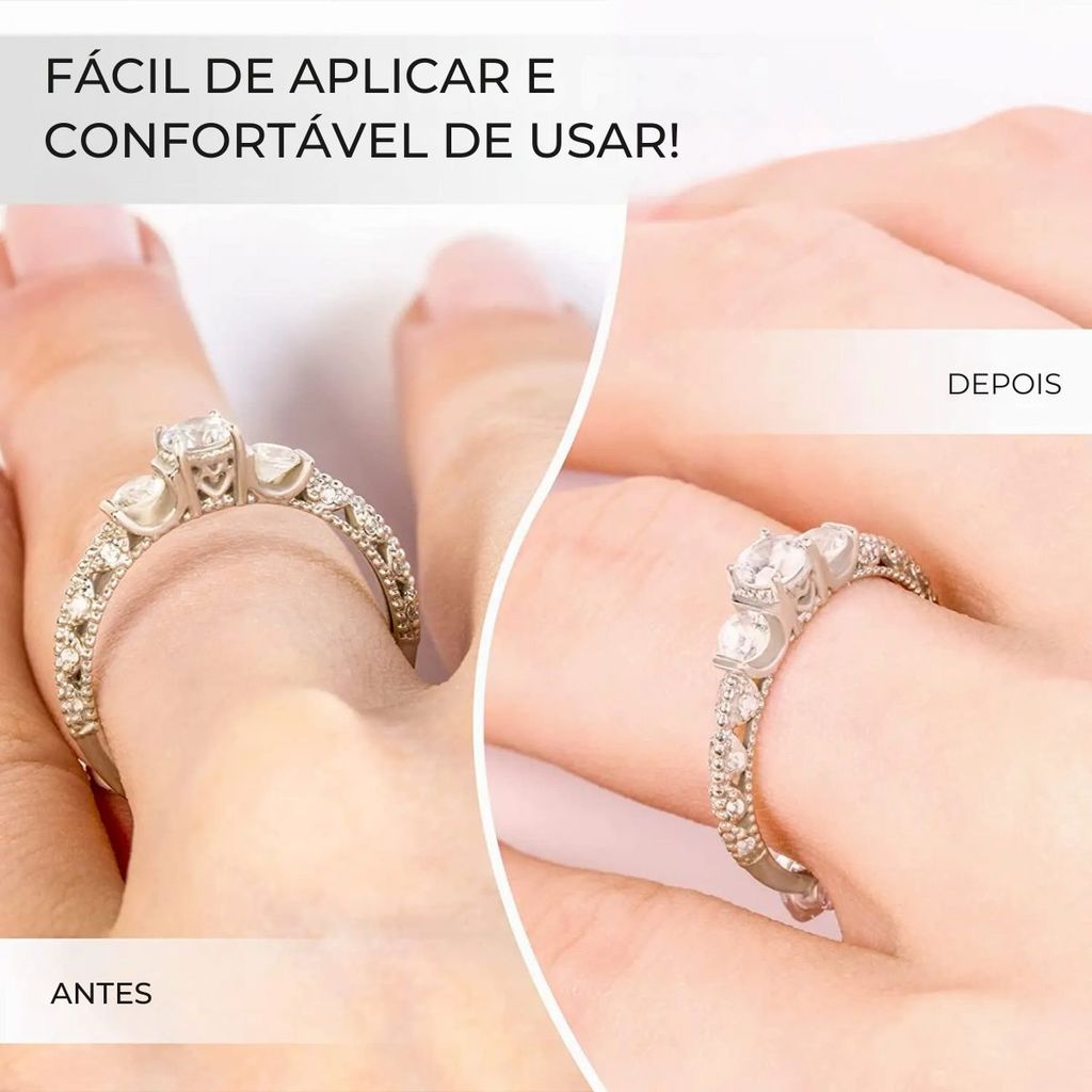 Ajustador de Anéis Dourado – Reduza o Tamanho do Seu Anel com Conforto e Discrição Produto a pronta entrega no Brasil. Os envios serão realizados em no máximo 24 horas após a compra. O Ajustador de Anéis Dourado é a solução ideal para quem deseja reduzir o tamanho do anel sem precisar recorrer a ajustes permanentes. Feito de silicone dourado, ele proporciona um encaixe seguro e confortável, mantendo o anel firme no dedo sem escorregar. Com 5 mm de espessura e 10 cm de comprimento por unidade, cada tira pode ser utilizada para ajustar de 4 a 6 anéis, dependendo do tamanho e do ajuste necessário. Sua flexibilidade permite uma adaptação fácil e discreta a diferentes modelos de anéis dourados, garantindo um ajuste perfeito sem comprometer o design da peça. Por que escolher o Ajustador de Anéis Dourado? Reduz o tamanho do anel de forma prática e segura Feito de silicone dourado, garantindo conforto e discrição Fácil de aplicar e remover, sem necessidade de ferramentas Cada tira de 10 cm pode ser utilizada para ajustar entre 4 a 6 anéis Compatível exclusivamente com anéis dourados Especificações: Material: Silicone dourado de alta qualidade Cor: Dourado Espessura: 5 mm Comprimento por unidade: 10 cm Quantidade ajustável por tira: Em média 4 a 6 anéis Estilo: Regulador discreto para ajuste de tamanho de anéis dourados Dicas de Uso: Enrole o ajustador na parte interna do anel até atingir o ajuste desejado Corte o excesso para um acabamento mais confortável Pode ser utilizado em anéis de diferentes larguras sem comprometer o design Dúvidas Frequentes: O ajustador é visível ao usar o anel?Não, ele é dourado e discreto, ficando praticamente imperceptível no uso diário. Posso usar o ajustador em anéis finos e grossos?Sim, o material é flexível e adaptável, podendo ser usado em anéis de diferentes espessuras. Quantos anéis consigo ajustar com uma tira?Cada tira de 10 cm pode ser utilizada para ajustar entre 4 a 6 anéis, dependendo do ajuste necessário. O ajustador machuca ou incomoda no dedo?Não, o silicone macio proporciona conforto e não causa irritação na pele. Corrija o tamanho do seu anel dourado com praticidade e discrição! Garanta já o seu Ajustador de Anéis Dourado e tenha um encaixe perfeito!