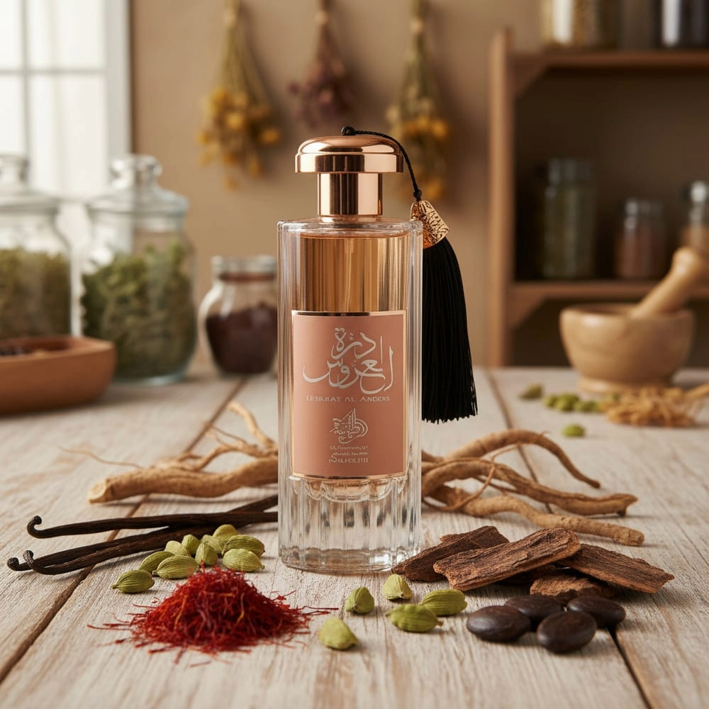 Durrat Al Aroos é um perfume Al Wataniah feminino oriental almiscarado. Possui um aroma vibrante, feminino e sofisticado. O nome do Perfume Durrat Al Aroos, de Al Wataniah, significa "Pérola" e "O encanto de noiva", o que define bem uma das características mais marcantes dessa fragrância: sua feminilidade e elegância. Sua mistura delicada e sofisticada de Orquídea, baunilha, Cumaru e notas de almíscar são combinadas com os aromas ousados do Sândalo e Âmbar, adicionando um toque sedutor a fragrância. Durrat Al Aroos faz parte da linha Dubai de Al Wataniah. Originário dos Emirados Árabes Unidos, Al Wataniah nasceu do desejo de entregar ao mundo elegantes fragrâncias com um toque místico, sedutor e de alta qualidade. Possui perfumes que combinam as melhores notas francesas com notas orientais, desenvolvidos por perfumistas de renome em todo o mundo. Suas combinações exclusivas são intensas e viciantes, cativando os que ousam se deixar seduzir por sua magia.