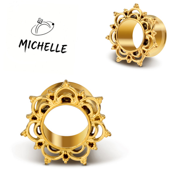 Alargador Aço Cirúrgico Pvd Indiano-PadrãO De Flor Oca Lóbulo De Orelha Michelle