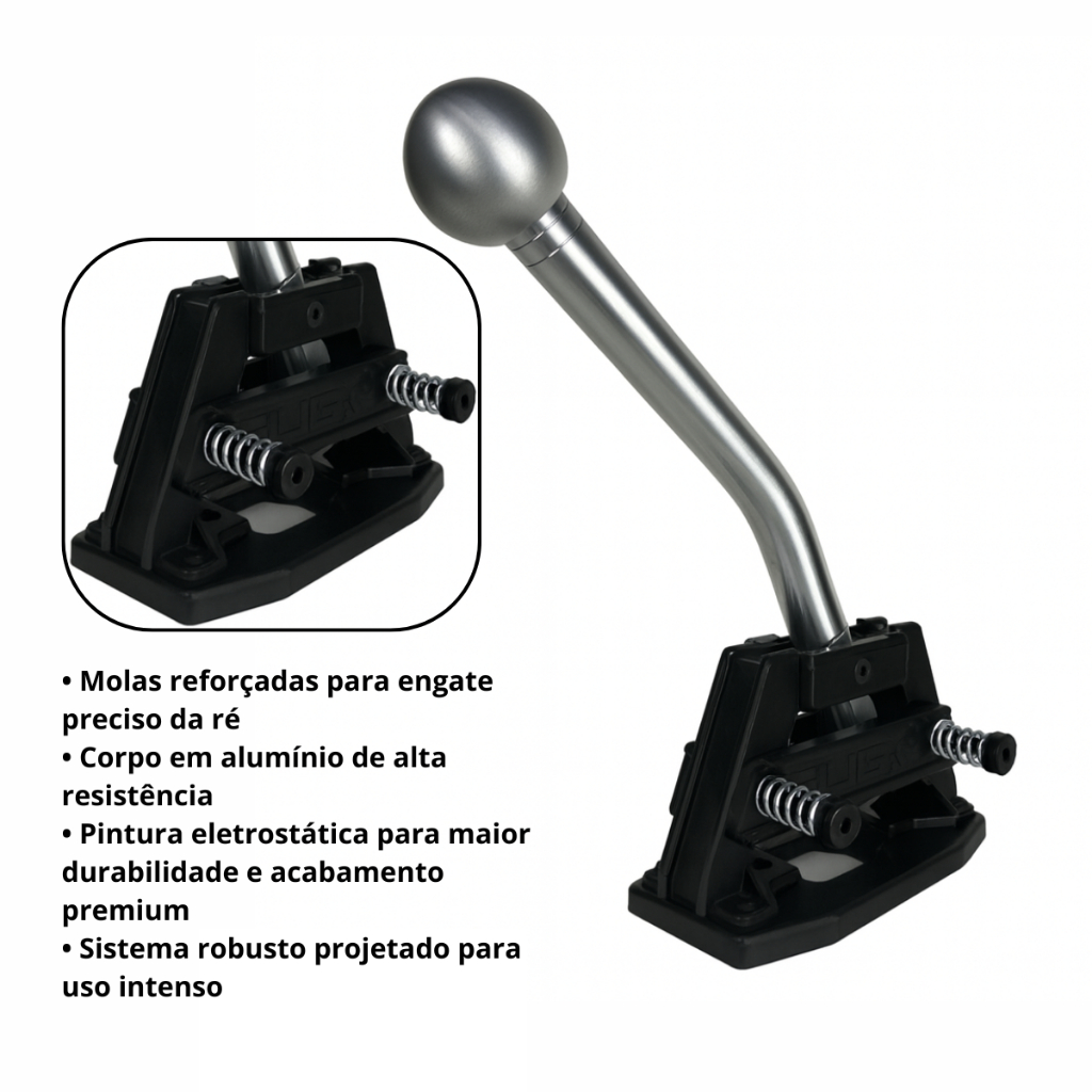 Alavanca Engate Rapido para Fusca / Variante / Brasilia / Buggy / Gurgel : A Alavanca em Alumínio apresenta uma tecnologia exclusiva para garantir um engate sem falhas, mesmo diante das torções da carroceria dos veiculos Air-Cooled. DESCRIÇÃO: Alavanca “Roletada” com 4 rolamentos. Altura: 40 cm (30cm + 10cm ) Haste curvada para não bater a mão no painel. O kit Air Cooled contém: 1 alavanca de engate rápido 1 extensor de 10 cm Parafuso para fixação Cartela para regulagem da ré Material: Haste - Aço escovado Base - Alumínio com pintura eletrostática Cor: Preto A Bugtech está à disposição para tirar qualquer dúvida antes da compra.