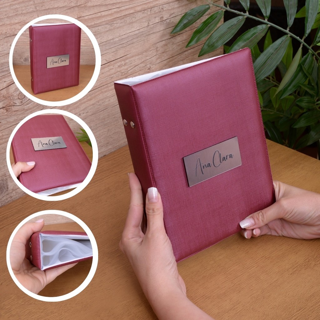 Álbum p 160 fotos 15x21 fotográfico Personalizado com Nome TAG Acrilico PRATA