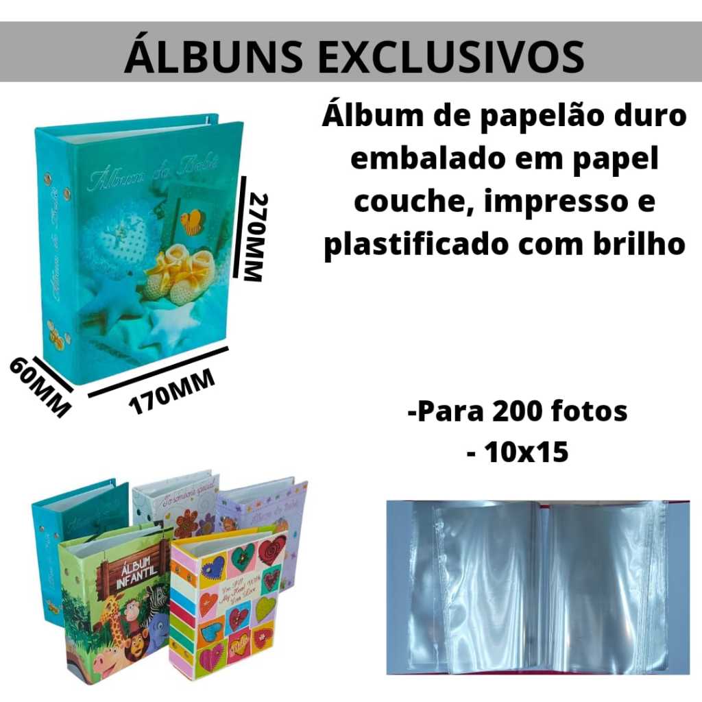 | Album para 120 fotos 10x15 Infantil Menino Menina este produto | R$ 19,90 | — | 4.8/5 | 118 |