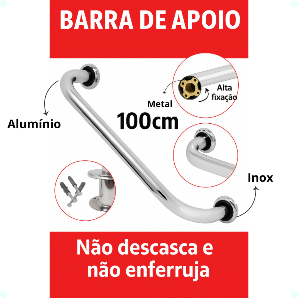 Alça de Apoio para Banheiro – Segurança, Conforto e Prevenção de Acidentes 🚿✅ Transforme o banheiro em um ambiente mais seguro para quem você ama! Nossa Barra de Apoio para Banheiro é a escolha ideal para garantir estabilidade, acessibilidade e proteção em áreas escorregadias, como box, sanitário ou corredor. 👉 Indicada para: ✔️ Idosos ✔️ Pessoas com mobilidade reduzida ✔️ Cadeirantes ✔️ Pós-cirúrgicos ✔️ Pessoas com deficiência Fabricada em alumínio de alta resistência com acabamento antioxidante, ela suporta até 150kg, proporcionando firmeza e tranquilidade para os momentos mais delicados do dia. ✅ Benefícios que fazem diferença: ✔️ Previne quedas e escorregões ✔️ Suporta até 150kg com segurança garantida ✔️ Material Antiferrugem – Ideal para locais úmidos ✔️ Fácil instalação – Acompanha parafusos e buchas ✔️ Design discreto e moderno, que combina com qualquer decoração ✔️ Disponível em : 100cm ✔️ Produto inspirado no padrão ABNT de segurança 📦 Conteúdo da Embalagem: 1x Barra de Apoio Kit de Fixação: Parafusos e Buchas 🚚 Envio imediato | 📦 Pronta entrega | 🏷️ Preço direto de fábrica Garanta agora mais segurança para você e sua família! Ideal para quem busca qualidade, segurança e preço justo!
