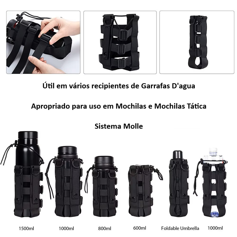 Alça Bolsa Porta Cantil Modular Molle Tática Mochila Airsoft Porta Garrafa D'agua