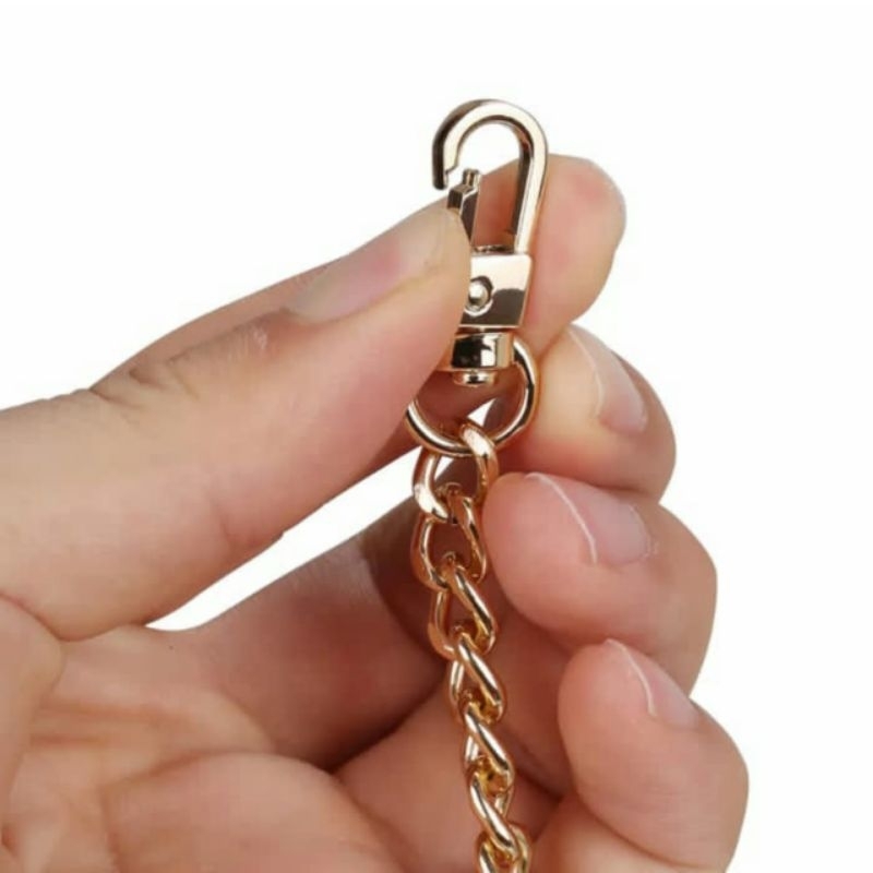 DESCRIÇÃO: SÃO 1.20 Metros De Corrente De Alumínio Com 2 Mosquetão Para Montagem De Bolsas E Artesanato.