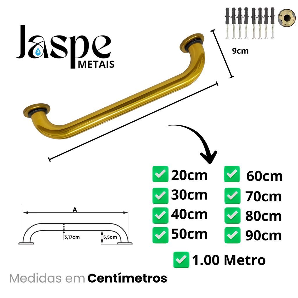 Alça de Apoio Dourada em Alumínio 20cm a 1Metro Banheiro PCD Idoso Segurança Corrimão