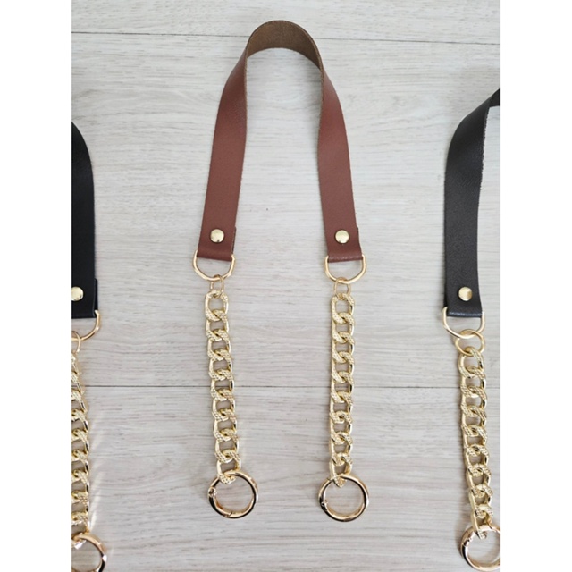 Alça de couro com corrente dourada com mosquetão articulado 55cm
