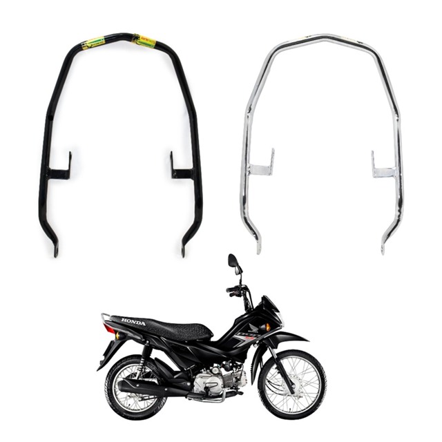 Alça esportiva pop 100 cromada/preta Descrição Alça Traseira Esportiva Pop 100 Características: • Excelente qualidade e durabilidade • Design arrojado • Incrementa a traseira da moto • Protege a rabeta da moto • Proporciona mais conforto ao garupa Aplicação: • Honda Pop 100 (todos os anos)