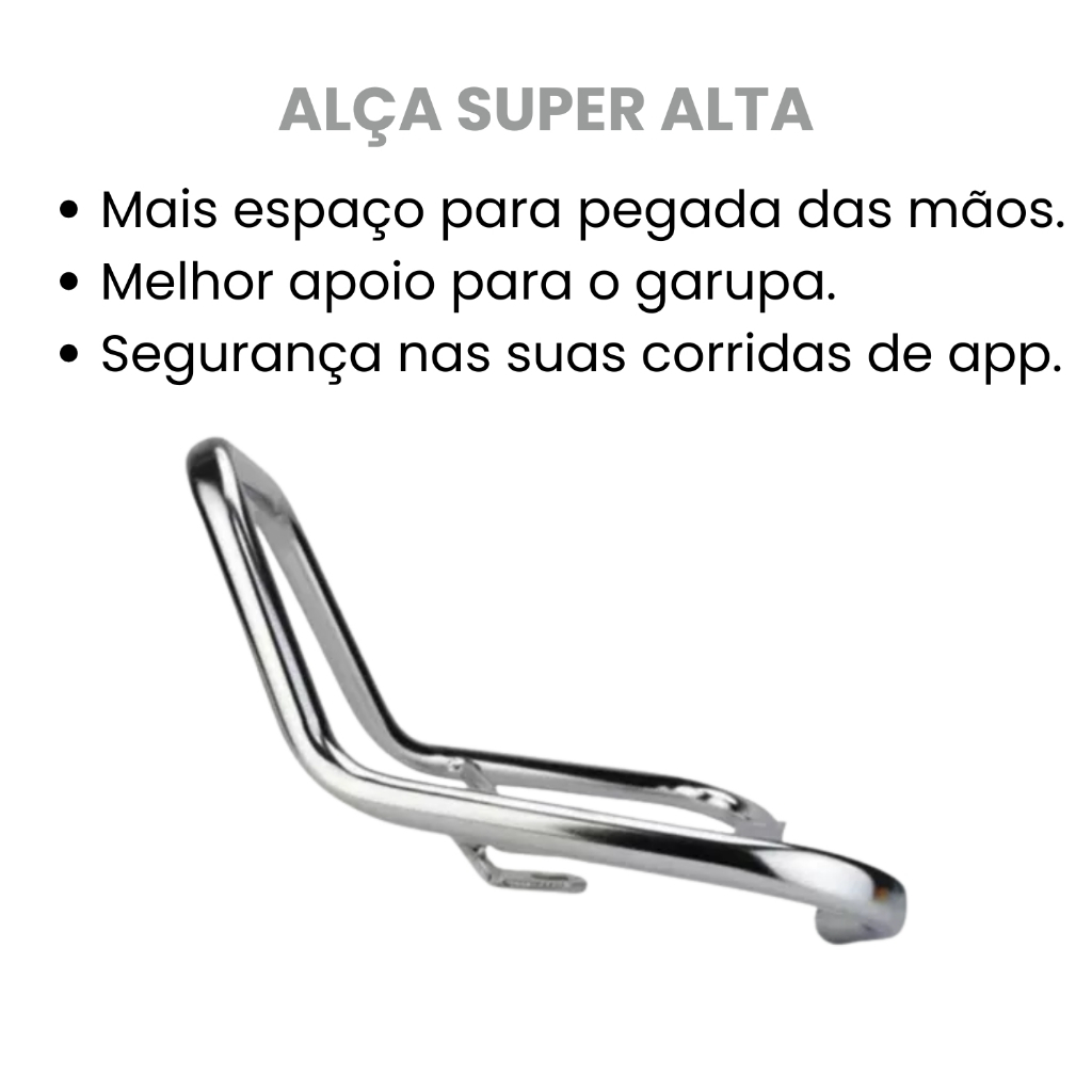 ALÇA TRASEIRA ESPORTIVA SUPER ALTA CROMADA. CÓDIGO: COD_18024. !!!!!!!!!!!!!!! FOTOS MERAMENTE ILUSTRATIVAS !!!!!!!!!!!!!!! APLICAÇÕES FAN 125 150 160 2014 EM DIANTE START 150 160 2014 EM DIANTE TITAN 150 2014 E 2015. MEDIDAS: Altura: 15 CM Largura: 32 CM Produto com visual arrojado, trazendo à motocicleta um visual mais esportivo. Desenvolvida em aço carbono de alta qualidade, garante longa durabilidade e resistência. Acabamento preto de alto brilho, proporcionando lindo visual. Encaixes perfeitos para fácil instalação. A instalação de uma alça traseira auxilia muito no transporte de passageiros, garantindo maior segurança e praticidade. Também possibilita a fixação e transporte de bagagens adicionais, muito útil no caso de viagens. SOBRE NOSSA EMPRESA: Somos uma organização com anos de experiência no mercado. Seja você um apaixonado por velocidade, um aventureiro de estrada ou um entusiasta da personalização, cumprimos a missão de fornecer peças e acessórios da mais alta qualidade para elevar sua experiência de pilotagem a um novo patamar. NÃO REQUER ADAPTAÇÕES NA MOTOCICLETA!!! UTILIZE O CAMPO DE PERGUNTAS E RESPOSTAS PARA TIRAR SUAS DÚVIDAS, e apenas confirme a compra em caso de CERTEZA de compatibilidade do produto!