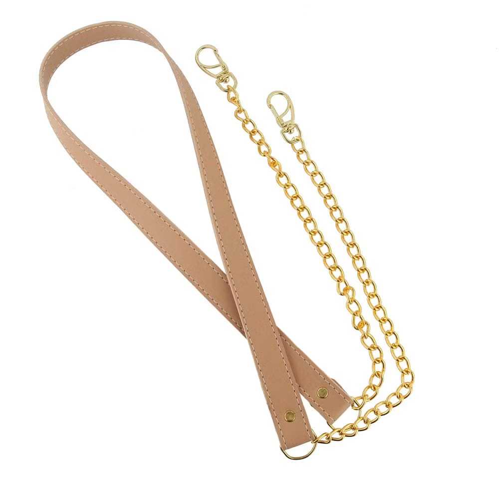 alça de corrente dublada e pespontada ela é produzida com:: corrente alumínio 1 par de mosquete 1 par de meia argola 1 par de arrebite todos alumínio banhado a ouro ou grafite tamanho 1.20