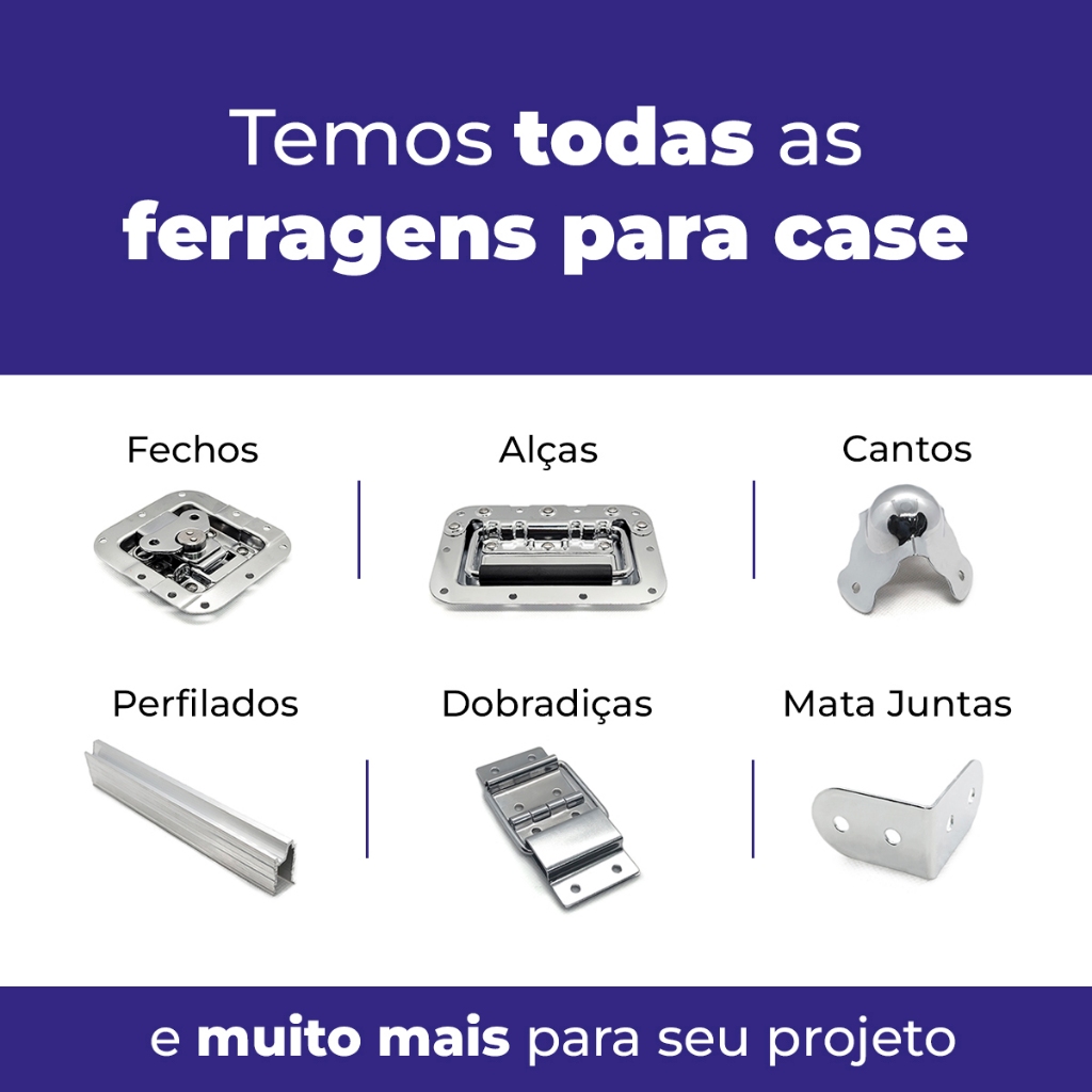 OBS: PARAFUSOS DO VIDEO NÃO INCLUSOS A MRDJ com as ferragens Lumitron, está no mercado a mais de 30 anos sempre oferecendo o melhor em qualidade e preço para seus clientes. Prezamos pelo bom atendimento e prazo de entrega, sempre pensando na satisfação e necessidade do cliente! Alça Plana de Borracha A alça plana de borracha é a escolha ideal para seu projeto de maleta e case. Ela é feita de borracha que envolve uma tira de metal firme e resistente, deixando seu projeto mais leve e compacto, uma vez que quando puxada ela forma o arco para pegada e quando solta, ela volta a ser plana. Aplicação Essa alça é da linha de ferragens externas, a fixação dela é feita por fora da madeira do case com apenas 2 furos para fixar. Isso garante uma fácil instalação, necessitando apenas alinhar e rebitar ela diretamente na madeira. Especificações Técnicas Altura 11 mm Comprimento 255 mm 2 furos para fixação Material da Alça: Borracha e tira de metal Material dos fixadores: metal Trabalhamos com a linha completa de ferragens para case, com alças, fechos, dobradiças, mata juntas, cantoneiras, perfilados, rebites, todas as peças para o seu projeto! Todos os produtos com Nota Fiscal Eletrônica a pronta entrega!