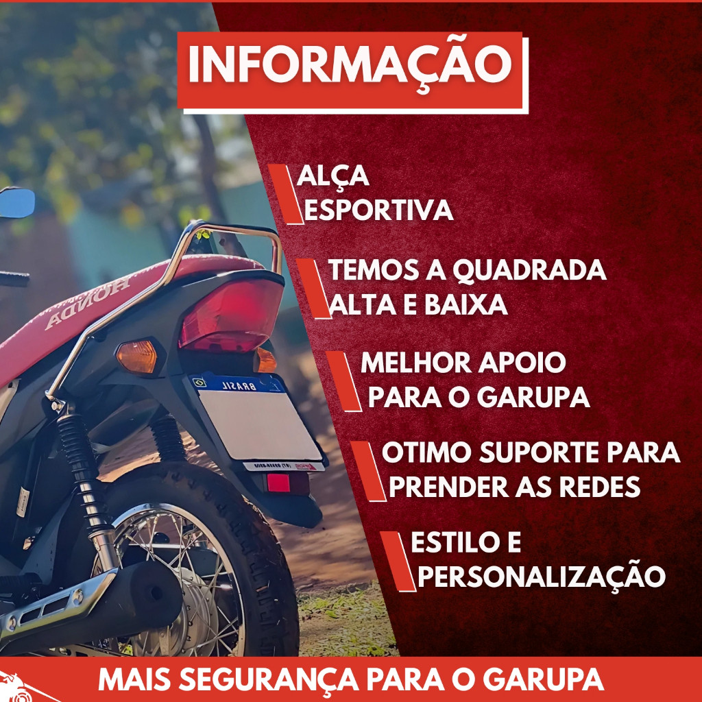 | Alça Traseira Cromada Churrasqueira Moto Pop 110i e 110 ES 2016 a 2... este produto | R$ 58,99 | 40% | 4.9/5 | 20 |