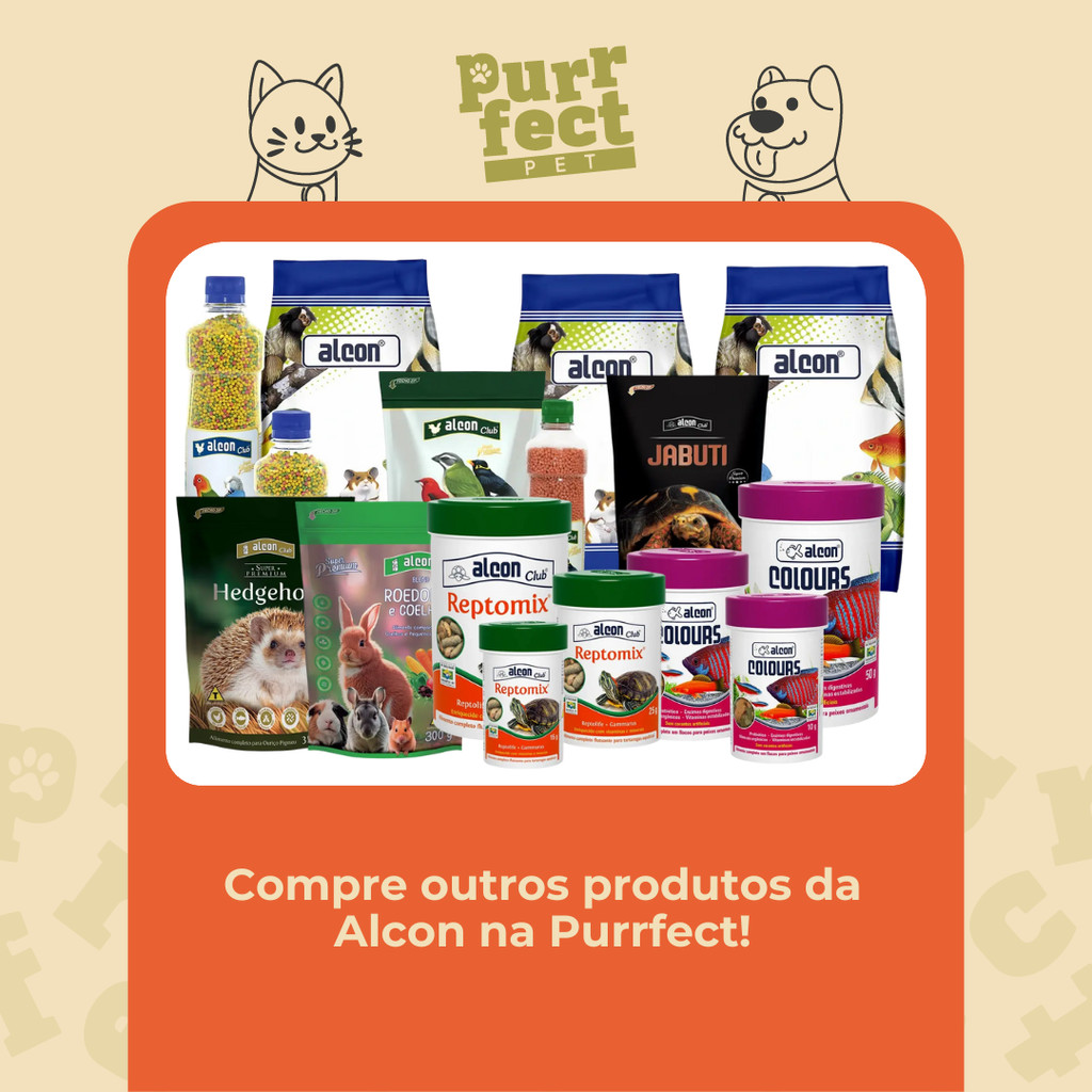 Alcon Club Roedores Alimento Extrusado Alimento completo para pequenos roedores Elaborado com ingredientes selecionados, proporciona alimentação de qualidade aos pequenos roedores, como Hamster, Gerbil, Topolino, Chinchila e Porquinho da Índia, e também aos Coelhos Anões. Apresenta diferentes formatos e cores variadas, que distraem e divertem os animais enquanto se alimentam. Modo de Usar Deixar o alimento sempre à disposição dos animais, mantendo o comedouro abastecido. Pode ser complementado com Alcon Club Frutas e Legumes. Manter água limpa sempre disponível. Na alimentação de Chinchila, Porquinho da Índia e Coelho Anão recomenda-se complementar a dieta com Alfafa ou outra fonte de fibra vegetal. Composição Básica do Produto Farelo de alfafa, biomassa de microalgas desidratada (Spirulina platensis), aditivo nutricional vitamínico, levedura inativada desidratada, aditivo nutricional mineral, fécula de mandioca, carbonato de cálcio, açúcar de cana-de-açúcar, óleo de soja refinado*, cloreto de sódio, farinha de milho, farelo de soja*, aroma de maçã (aditivo sensorial aromatizante), amarelo tartrazina, azul indigotina, amarelo crepúsculo, vermelho allura (aditivos sensoriais corantes) (0,13 %), ácido cítrico, BHA, BHT (aditivos tecnológicos antioxidantes). *Espécies doadoras de gene: Agrobacterium tumefaciens, Bacillus thuringiensis, Arabidopsis thaliana, Streptomyces viridochromogenes.