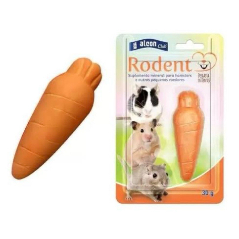 Alcon Club Rodent é um suplemento mineral para hamsters e outros pequenos roedores. Fornece cálcio e fósforo, além de promover o necessário desgaste dos dentes. Produzido com ingredientes naturais, supre as necessidades de minerais importantes à boa saúde dos pequenos roedores mantidos em cativeiro. Os roedores precisam roer objetos para conter o crescimento constante de seus dentes. Alcon Club Rodent ajuda a preservar os utensílios da gaiola. Forma de uso: Fixar o bloco dentro da gaiola, em local de fácil acesso. Um animal deve consumir o bloco em aproximadamente dez dias, o que resulta em um consumo médio diário de 3 g do produto.