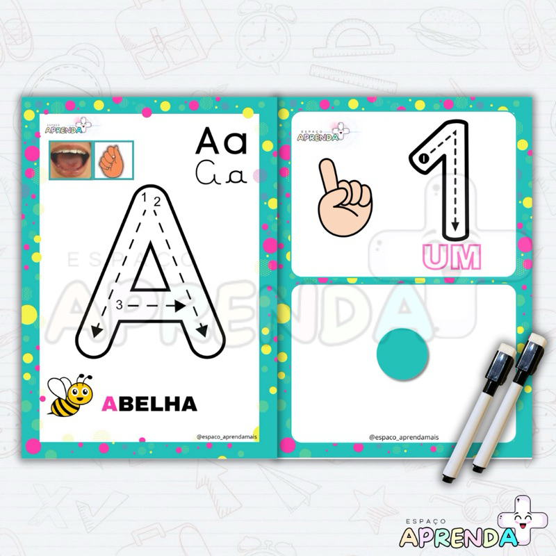 ALFABETO COORDENAÇÃO MOTORA ESPECIAL + NUMERAIS - PLASTIFICADO (COM CANETA APAGÁVEL)