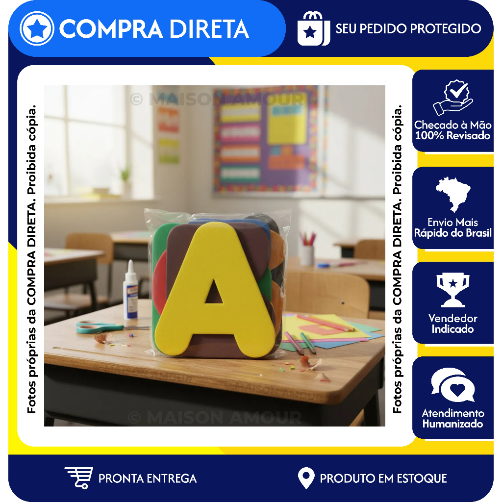 Ideal Alfabeto Eva Grande, Alfabeto Móvel Gigante, Letras e Números em E.V.A-, Aniversário, Apliques Eva, Artesanato, Brindes, Decoração de Festas, Decoração para Quarto, Decorativos, Enfeites, Enfeites Aniversário, Enfeites de mesa, Eventos, Festas, Lembrancinhas Eva, Quadro Decorativo IMPORTANTE -> LEIA TODA A DESCRIÇÃO! LETRA EM EVA LISO PARA DECORAÇÃO ( não são autoadesivos ) ------------------------- CARACTERÍSTICAS DO PRODUTO -------------------------- Altura: 10cm (tamanho aproximado) Largura: Variavél de acordo com o formato de cada letra exemplo letra "I' ou letra "W" Cores/Estampas: Sortidas Material com ALTA QUALIDADE, Leve, Resistente. ------------------------- PERGUNTAS FREQUENTES ------------------------- P: A Letra é resistente? P: Esse produto lavável? P: Produto em Estoque? R: Sim, temos estoque. Se você comprar agora, envio em 24h com o envio do código de rastreio dos Correios. P: Letra em Eva a Pronta-Entrega? R: SIM; temos um estoque alto desses produtos a PRONTA ENTREGA com ENVIO IMEDIATO. P. Qual o prazo de entrega? R: Postagem em até 24 horas, mais o tempo do envio dos Correios. ------------------------- TIRE SUAS DÚVIDAS ------------------------- A qualquer momento, você pode entrar em contato tirando todas as suas dúvidas. Será um prazer atendê-lo(a); estamos sempre prontos o atendimento e rápido e eficiente ajudando a fechar sua compra. ------------------------- INFORMAÇÕES IMPORTANTES ------------------------- - FOTOS ILUSTRATIVAS, as imagens podem sofrer variações nas tonalidades conforme o seu monitor. - MELHOR PREÇO DO BRASIL, clique agora no botão "COMPRAR AGORA" para garantir sua LETRAS EM EVA LISO. - ENVIO IMEDIATO, produto em estoque. - POSTAGEM MAIS RAPIDA, entregas em todo o Brasil. Aproveite!! Boas Compras!