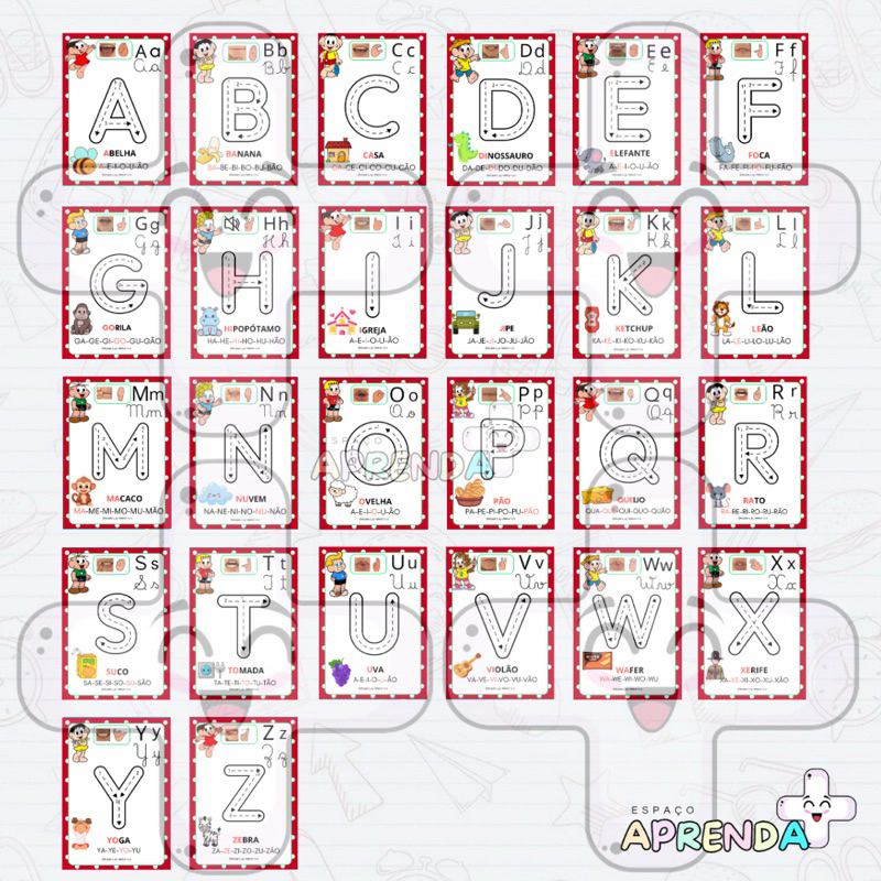 ALFABETO ESPECIAL COORDENAÇÃO MOTORA PLASTIFICADO – T. DA MONICA (COM CANETA)
