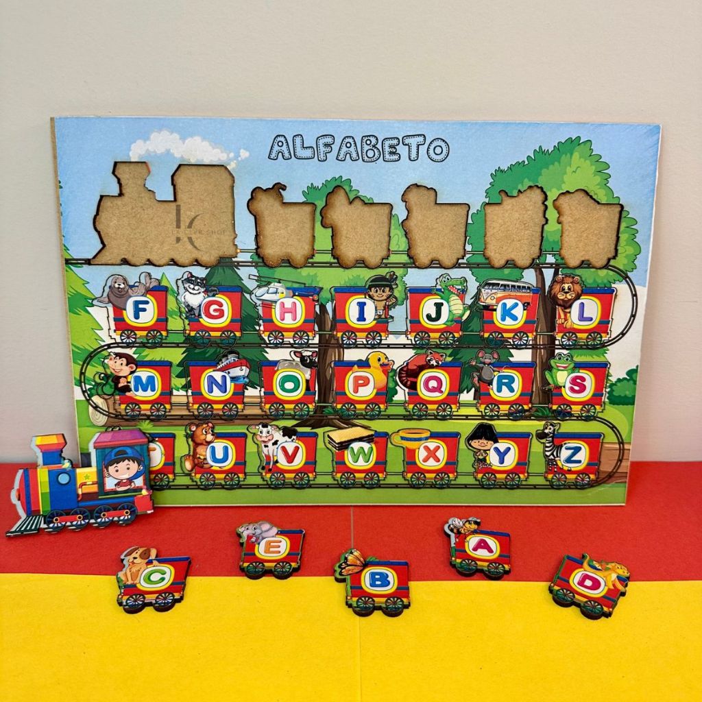 Alfabeto Trem Brinquedo Pedagógico Educativo de Madeira e Encaixe Trenzinho Divertido