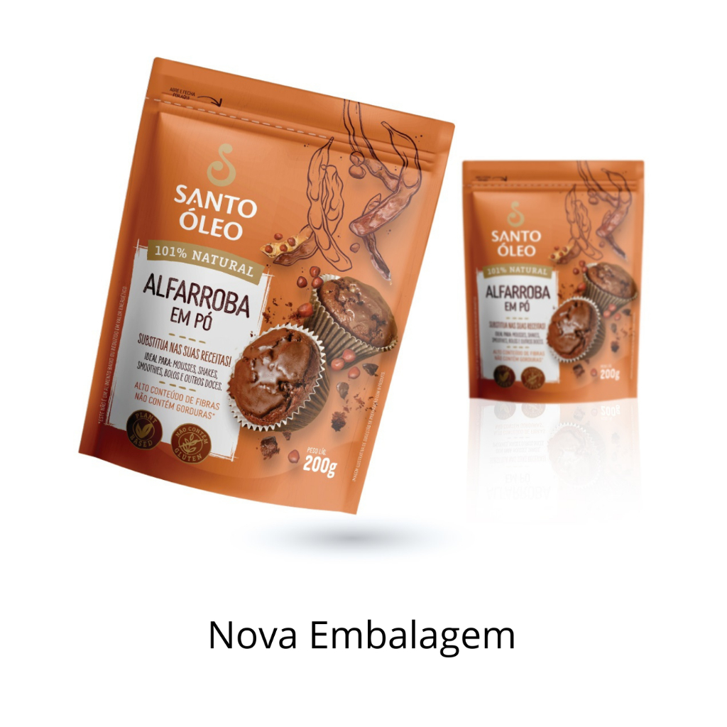 Alfarroba em Pó Premium 100% Natural 200g - Santo Óleo A Alfarroba em Pó 200g Santo Óleo é um produto 100% natural, vegano e livre de glúten. Nós produzimos a alfarroba a partir das vagens da alfarrobeira, preservando todas as suas propriedades nutricionais. Dessa forma, você obtém um pó rico em fibras, minerais e antioxidantes, ideal para quem busca receitas saudáveis e práticas. Com sabor naturalmente doce e aroma suave, a alfarroba em pó substitui o cacau em bolos, pães, panquecas, smoothies, tortas e bebidas quentes. Além disso, ela combina perfeitamente com outros produtos da linha Santo Óleo, como a Farinha de Coco Branca 200g ou o Leite de Coco em Pó 200g, permitindo criar preparações ainda mais nutritivas e saborosas. A alfarroba em pó é rica em fibras, auxiliando o bom funcionamento do intestino e prolongando a sensação de saciedade. Além disso, contém antioxidantes que ajudam a combater os radicais livres, promovendo saúde da pele e do sistema cardiovascular. Por ser naturalmente doce, ela permite reduzir a quantidade de açúcar nas receitas, tornando-as mais saudáveis sem comprometer o sabor. Além do uso culinário, você pode adicionar a alfarroba a shakes, vitaminas, smoothies e sobremesas funcionais. Dessa forma, você aumenta o valor nutricional das preparações e aproveita todos os benefícios da alfarroba. Para mais informações sobre os benefícios da alfarroba, consulte este artigo da Universidade de São Paulo (USP). A embalagem de 200g oferece praticidade, fácil armazenamento e excelente custo-benefício. Assim, o produto permanece sempre fresco e pronto para uso em qualquer momento do dia. Escolher a Alfarroba em Pó 200g Santo Óleo significa optar por um produto versátil, saudável e sustentável. Além disso, ela se torna uma excelente alternativa para quem valoriza produtos naturais e nutritivos no dia a dia.