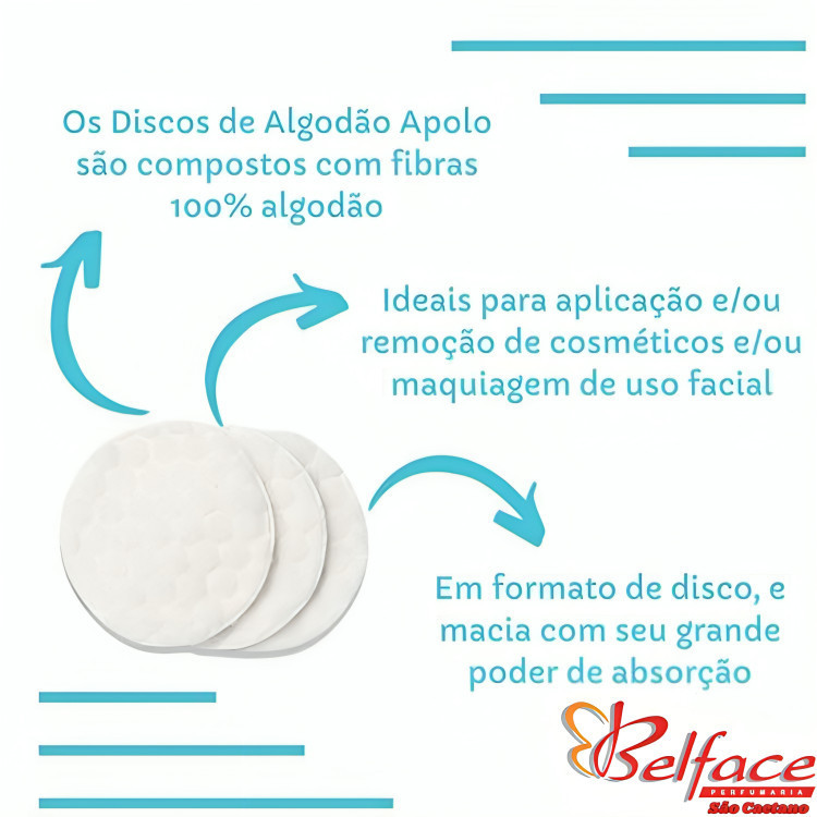 Olá seja bem vindo Disco De Algodão Apolo Limpeza Facial Maquiagem De Pele 70g O Disco de Algodão 70g Apolo é produzido a partir de rigorosa seleção de fibras naturais 100% puro algodão Asseguram qualidade, higiene, maciez e alto poder de absorção. Ideal para higienização e assepsia da pele, remoção de maquiagem, esmalte, higiene do bebê e aplicabilidades domésticas. Comercializado em embalagens plásticas de 70g Estamos sempre à disposição para tirar qualquer dúvida. Aguardamos seu pedido! Belface