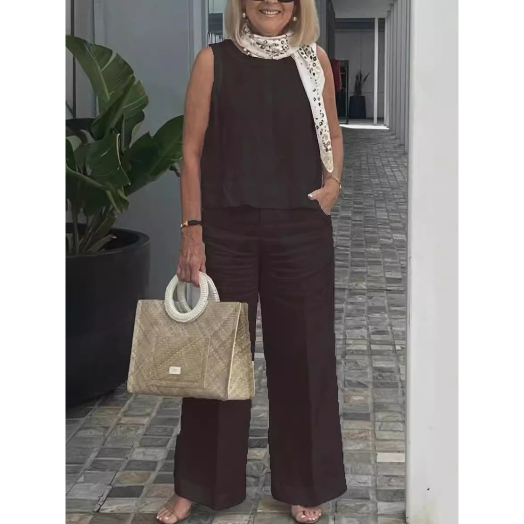 Marca: LCSKEREAL Decoração do bolso: Bolso Estilo do estilo: Casual Material: Algodão, Linho Temporada de ano: Verão Pacote de roupas: Pullover Elasticidade do tecido do tecido do tecido: Micro-elástico Tipo de tecido de tecido: Algodão e linho Alta Atenção a produtos químicos: Nenhuma Tipo de padrão: cor sólida Tipo de placa de placa de aço inoxidável: Regular Idade de áudio: IDADE MIDDLE Comprimento superior do topo: Regular Comprimento da Calça (cm): Calça Mopping Ingredientes do tipo: 96% e acima Lugar de origem (país ou região): China continental (origem) Tipo de gola redonda: Pescoço redondo Estilo da Calça: Calça Perna Larga Modelo do modelo: J24009 Comprimento Manga Manga (cm): Sem Mangas Gênero: Mulheres