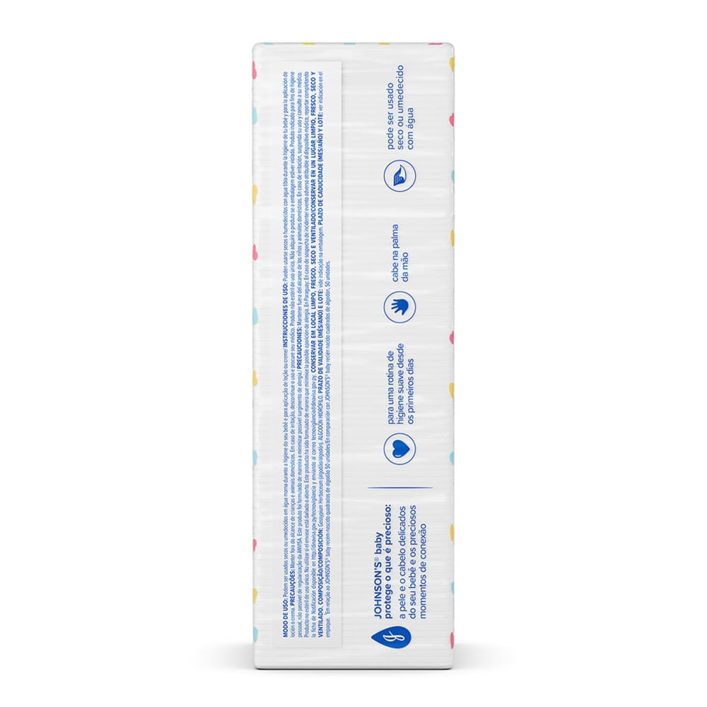 Algodão Quadrado Johnson's Baby Recém Nascido Sem Fragrância Os Quadrados de Algodão Recém-Nascido JOHNSON’S® baby proporcionam uma rotina de higiene suave desde os primeiros dias de vida. Ideais para