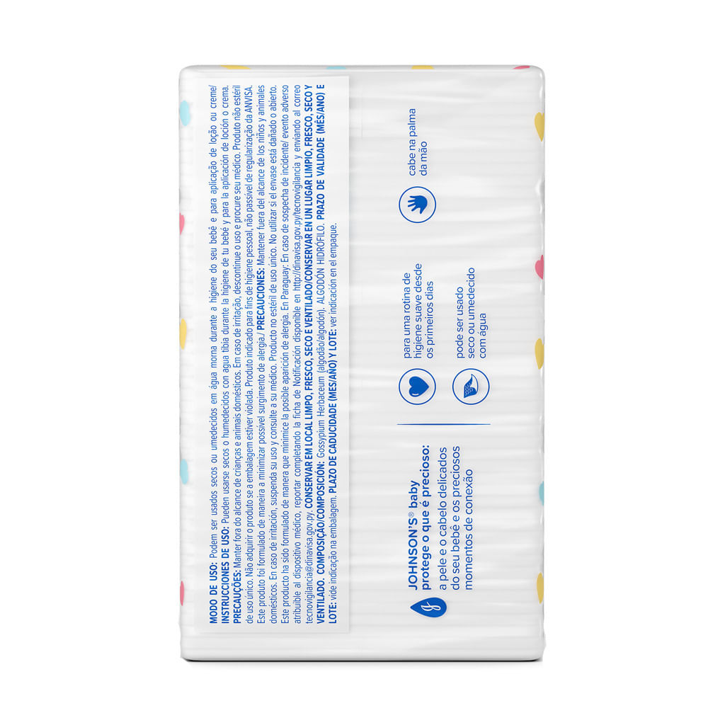 Algodão Quadrado Johnson's Baby Recém Nascido Os Quadrados de Algodão Recém-Nascido JOHNSON’S® baby proporcionam uma rotina de higiene suave desde os primeiros dias de vida. Ideais para recém-nascidos