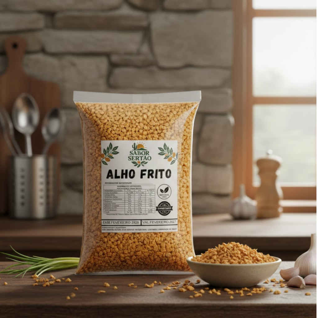 🧄 ALHO FRITO CROCANTE O Alho Frito é produzido a partir de alho cuidadosamente selecionado, fatiado ou granulado e frito até atingir o ponto ideal de crocância e cor dourada. Prático e saboroso, é perfeito para finalizar pratos, trazendo aroma marcante, textura crocante e um toque especial às receitas. Produto pronto para uso, com excelente rendimento e sabor equilibrado, ideal tanto para uso doméstico quanto profissional. ✅ DIFERENCIAIS DO PRODUTO Alho selecionado e bem processado Textura crocante e uniforme Sabor intenso e aroma característico Pronto para uso Ideal para finalização de pratos 🍽️ SUGESTÕES DE USO Pode ser utilizado em arroz, feijão, massas, saladas, carnes, legumes, sopas, farofas, purês e diversos outros preparos culinários. (pode haver traços de glúten por contaminação cruzada)